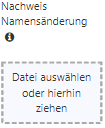 ![]() | Nachweis Namensänderung (Proof of name change) If your name on your diploma is different from your name in your passport, for example, because you are married, you can upload a proof here. Both names must be recognizable on this document. |